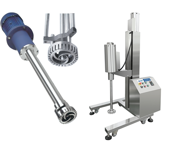 電動(dòng)機(jī)全速運(yùn)轉(zhuǎn)帶動(dòng)主軸上的切割輪(轉(zhuǎn)子)使物料產(chǎn)生極高的離心速度,物料通過高速旋轉(zhuǎn)的切割輪與固定的切割套定子之間所產(chǎn)生的強(qiáng)力的剪斷、沖擊、紊流等過程,物料在剪縫中被切割,迅速破碎成200 nm- -2um的微粒??墒刮锪显诙虝r(shí)間內(nèi)完成微粒化、乳化、攪拌、調(diào)勻、分散等。