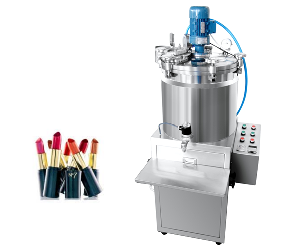 將口紅料放入鍋內(nèi),加熱至- -定溫度后,邊攪拌均勻、邊真空脫泡,然后灌裝入口紅模。高速分散式攪拌槳在真空條件下攪拌,攪拌槳轉(zhuǎn)速無極可調(diào)。